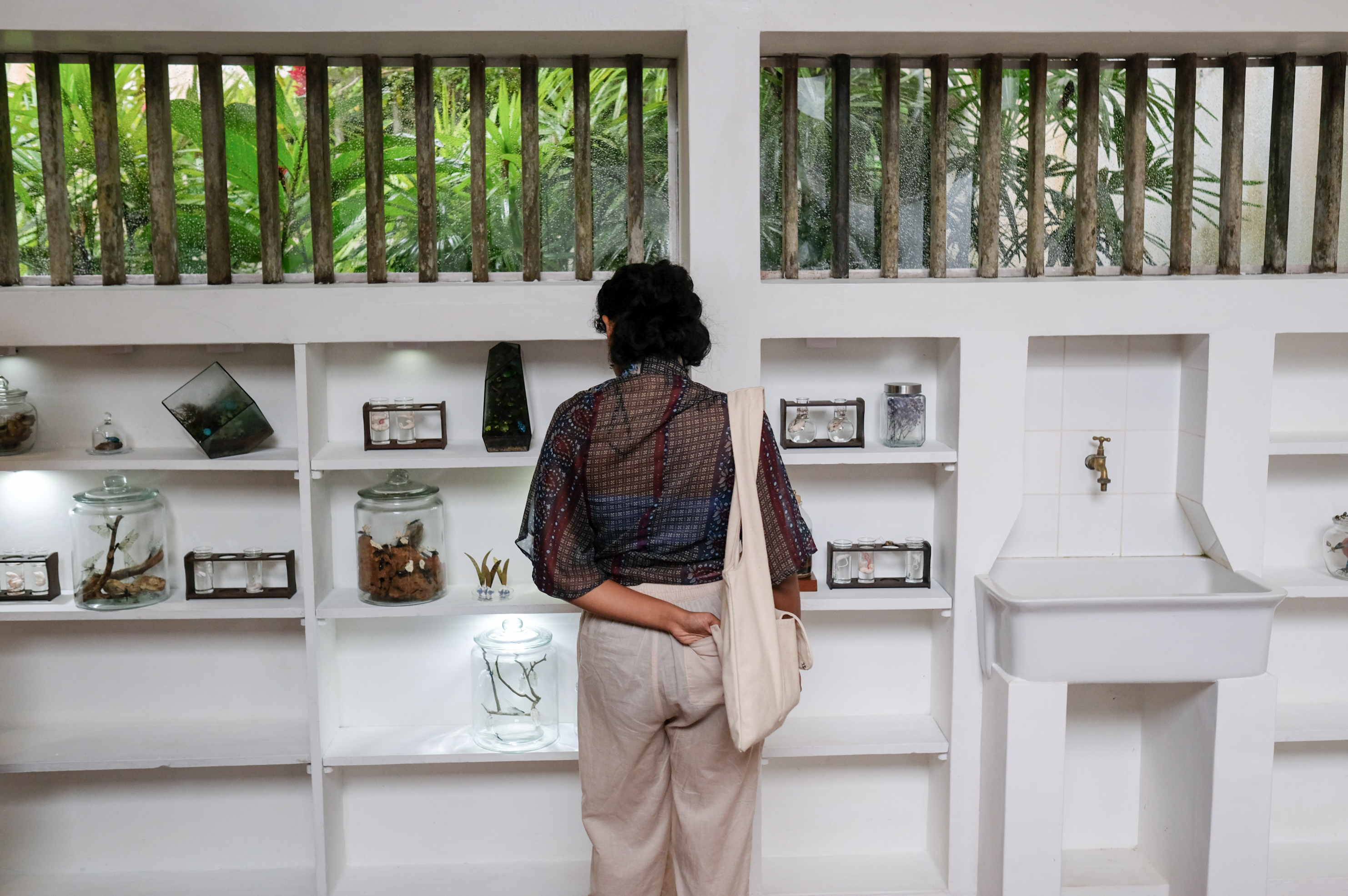 In this newly-commissioned site-specific body of work she responds to Anil’s biography as an artist and environmentalist. Salome uses real and imagined depictions of animate forms often depicted in states of transition and renewal, which draws inspiration from a series of oral histories with family and friends of Anil, undertaken in the research for this exhibition. The installation draws from the disciplines of science and art, echoing the way Anil’s room served his pursuits in knowledge and expression as a painting studio and a laboratory.