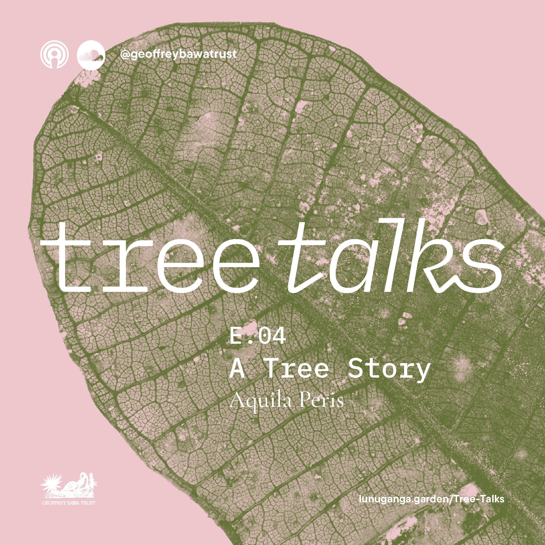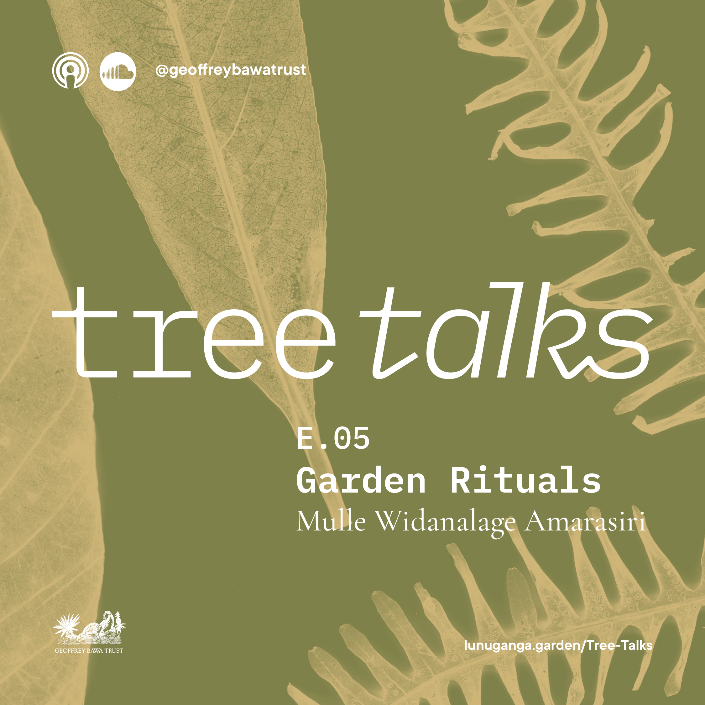 Tree Talks is a podcast series launched in February of 2024. The podcast explores a wider narratives rooted in the flora of Lunuganga. The first season delves into the themes of rituals, healing, and habitats while questioning our relationship to trees and nature, which are often taken for granted. The podcast series gives insights to the process of deriving a multitude of conversations based on the garden featuring naturalist Gehan de Silva Wijeyeratne, fashion designer and researcher Sanjeewa Wijesundara, cultural anthropologist Dr Danister Perera, architect Aquila Peris, Head Gardener at Lunuganga Mulle Widanalage Amarasiri and ornithologist and ecologist Professor Sarath Kotagama.